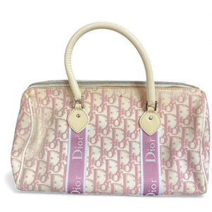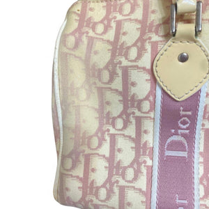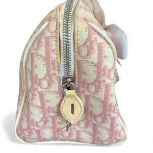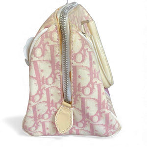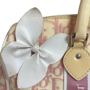 Dior - Pink and Cream Monogram Satchel Bag with Floral and Butterfly Embellishments