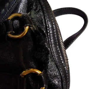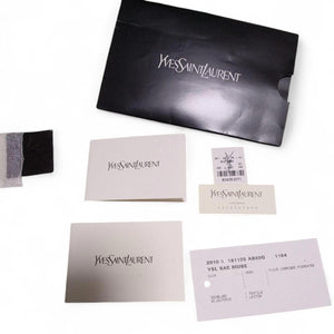 This Saint Laurent women's satchel bag is crafted from high-quality black leather, featuring gold-tone hardware accents and sturdy double handles. The structured design offers both style and practicality, making it an ideal accessory for everyday use or special occasions.