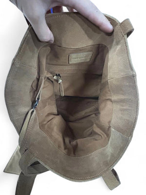 This Zadig & Voltaire tote bag is crafted from soft brown suede and features stylish fringe detailing on the sides. It has a spacious interior with a zippered pocket for secure storage and sturdy dual handles for comfortable carrying. The bag combines practicality with a chic bohemian aesthetic, suitable for everyday use or casual outings.