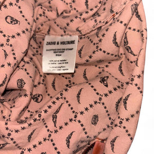 This Zadig & Voltaire tote bag features a soft pink leather exterior with a snakeskin-patterned front pocket and bottom accent. It includes dual shoulder straps for comfortable carrying and multiple zippered compartments for organized storage.