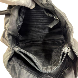 Prada - Black Nylon Handbag with Logo Plaque