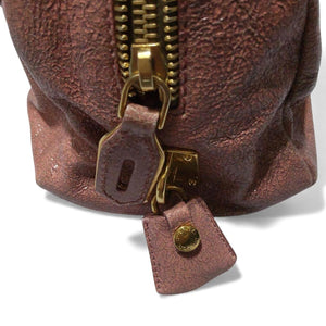 This Prada handbag features a soft pink leather exterior with a structured shape and a single top handle. The bag includes a zippered closure and an interior zip pocket for secure storage. It is a stylish and practical accessory for everyday use.