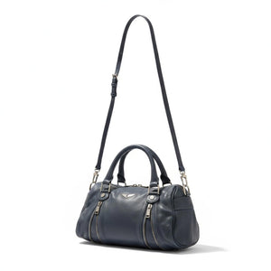 This Zadig & Voltaire handbag is crafted from high-quality leather in a classic dark navy shade. It features dual top handles and an adjustable shoulder strap for versatile carrying options. The bag is accented with silver-tone hardware and front zipper details, combining functionality with elegant design.