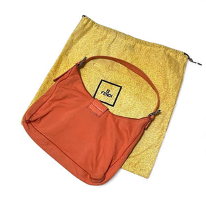 Fendi - Orange Nylon Leather Shoulder Bag Silver Buckle