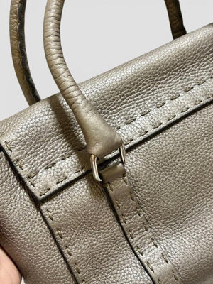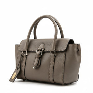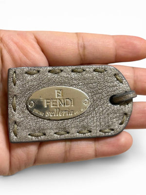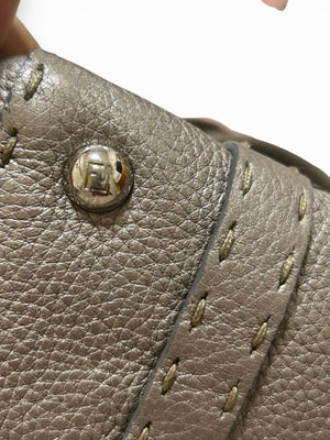 This Fendi Selleria handbag is crafted from high-quality taupe leather with detailed stitching and a polished buckle closure. The compact size makes it perfect for everyday use while maintaining an elegant and timeless look.