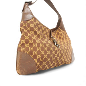 Gucci - Brown Monogram Canvas Leather Shoulder Bag