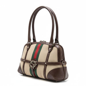 Gucci - Vintage Brown Leather Canvas Handbag
