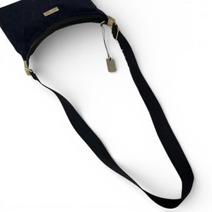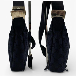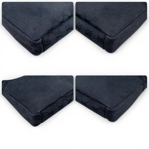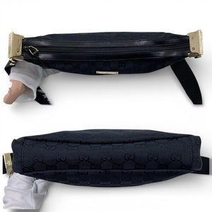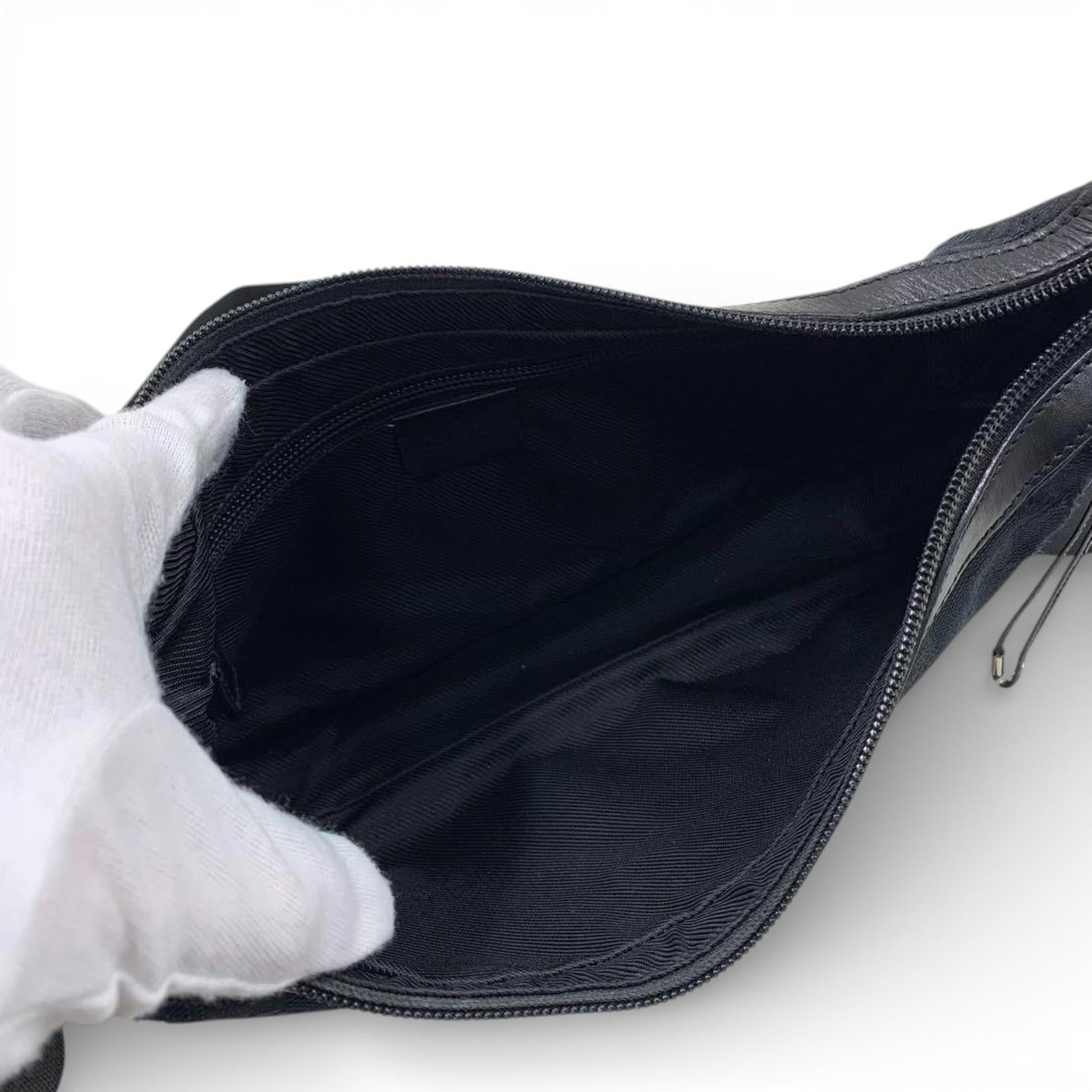 This Gucci shoulder bag features the iconic GG canvas in black, complemented by a sturdy black adjustable strap and silver-tone hardware. The bag is designed for everyday use with a zip-top closure to keep your belongings secure.