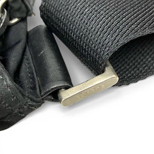 This Prada black nylon crossbody bag is a versatile and practical accessory. It features a sleek design with the iconic Prada triangular logo on the front and an adjustable shoulder strap for comfortable wear.