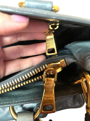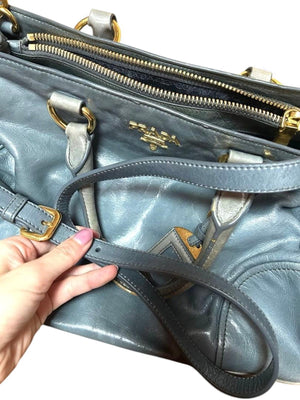 Prada - Blue Leather Handbag Gold Hardware