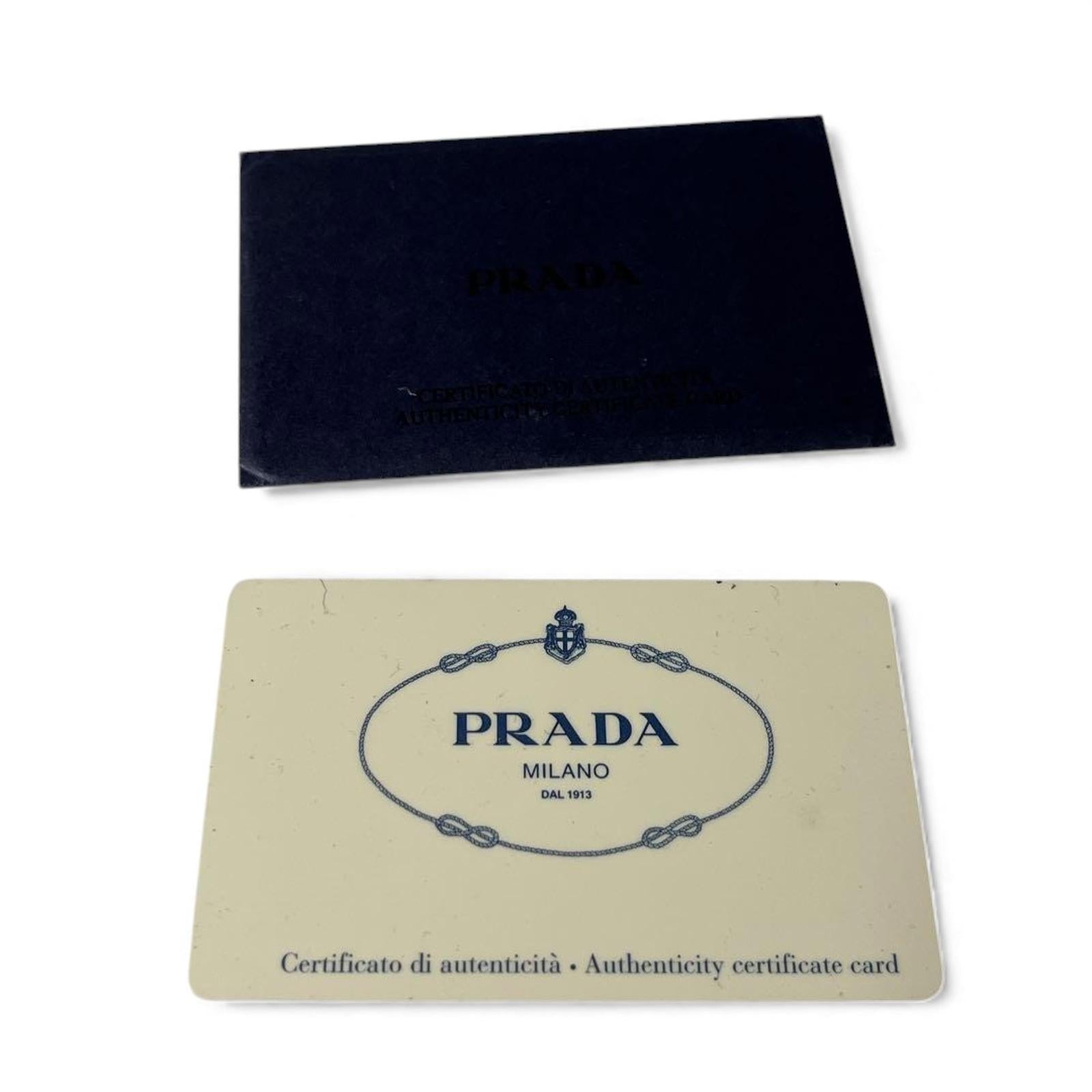 This Prada handbag features a quilted nylon body with gold-tone accents and dual shoulder straps. It is designed with a zippered top closure and a classic triangular Prada logo plaque on the front. The bag offers a sophisticated yet practical style suitable for everyday use.