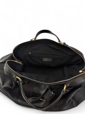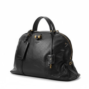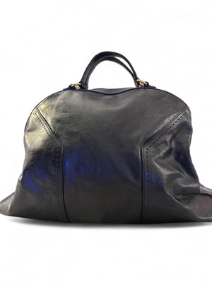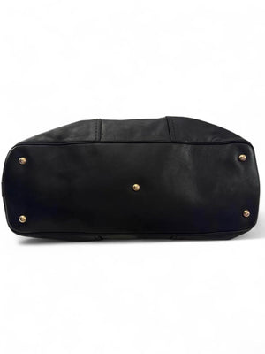This Yves Saint Laurent handbag is crafted from high-quality black leather, featuring a spacious interior perfect for everyday use or travel. It includes dual top handles, a zip closure, and a leather tag with the brand's embossed logo. The bag offers a sleek, timeless design suitable for various occasions.