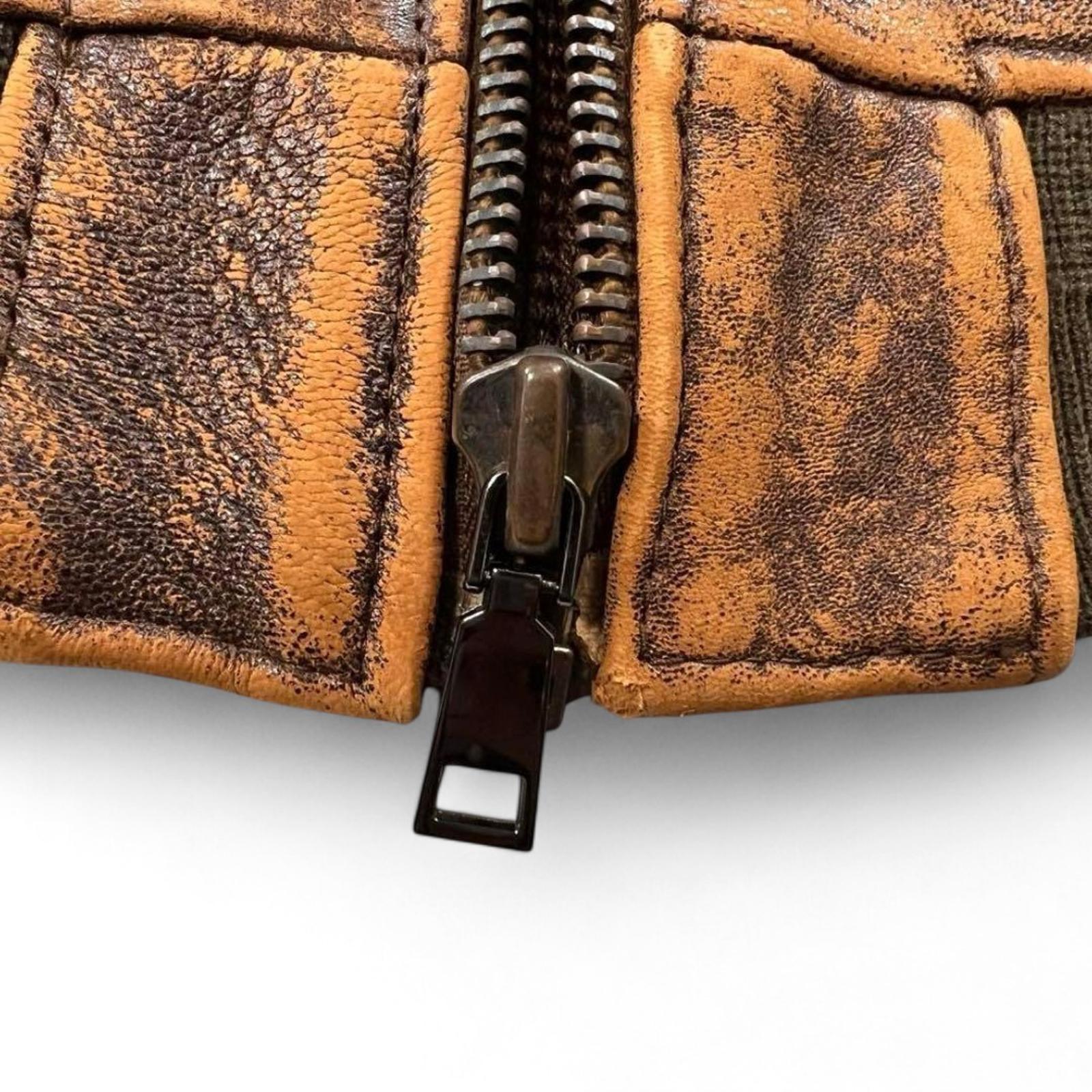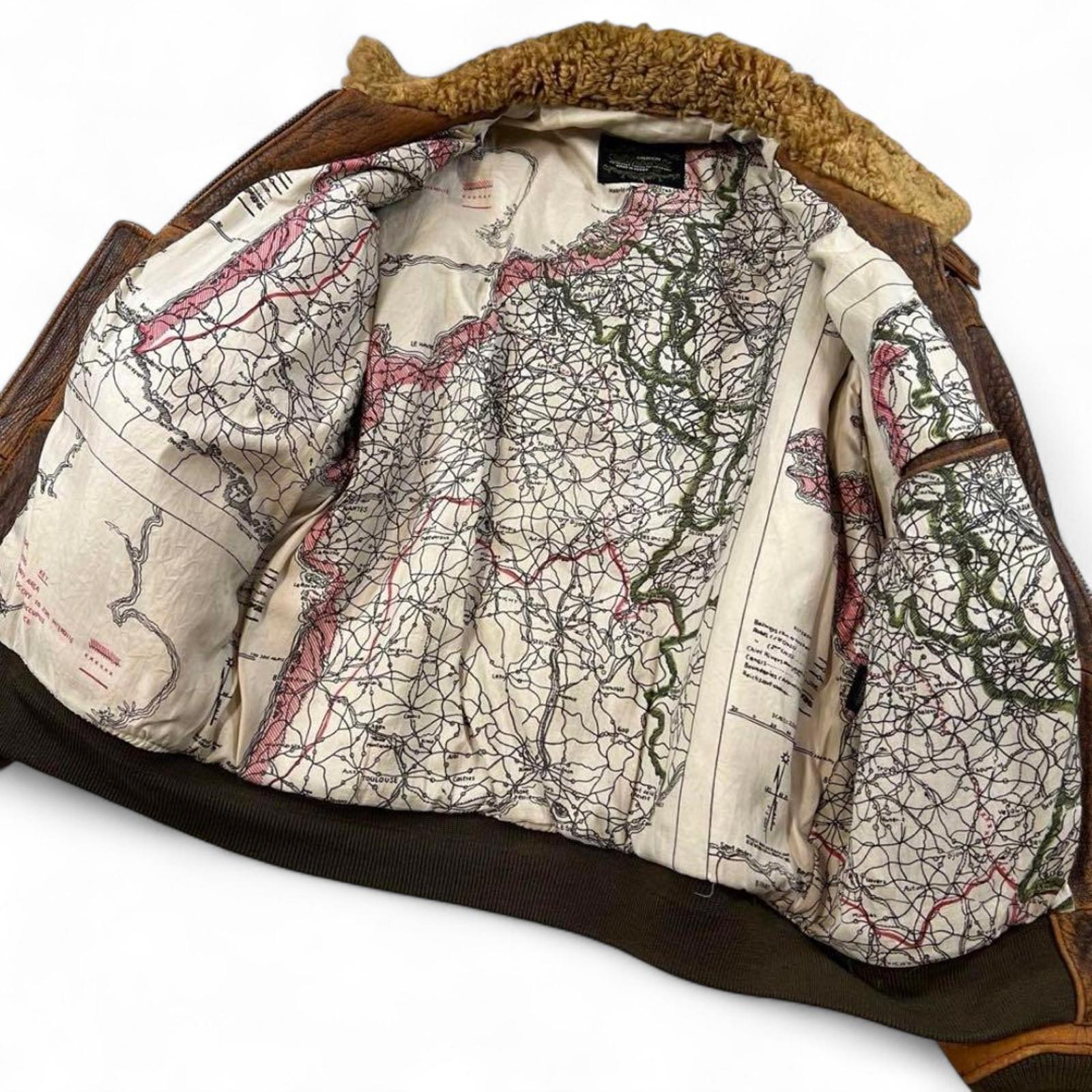 Avirex - Vintage Style Brown Leather Bomber Jacket with PTC