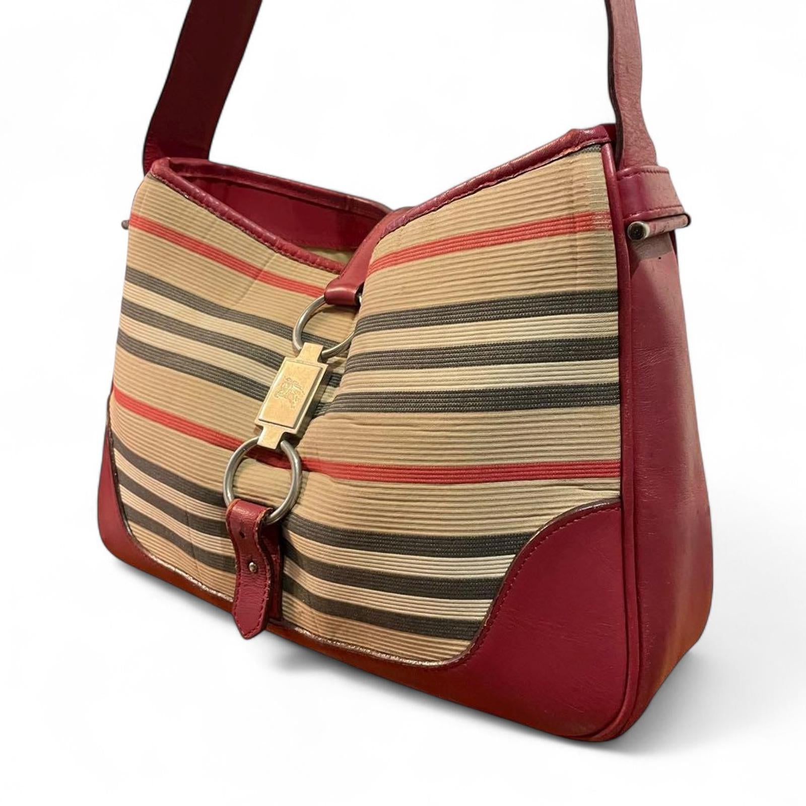 Burberry - Red and Beige Striped Leather Shoulder Bag
