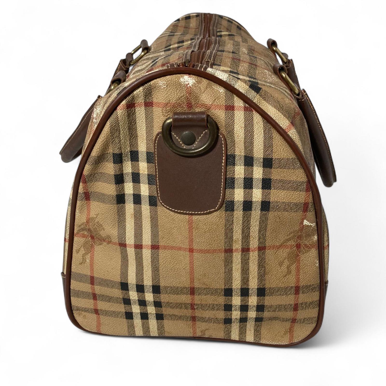 Burberry - Vintage Checkered Travel Bag with Brown Leather
