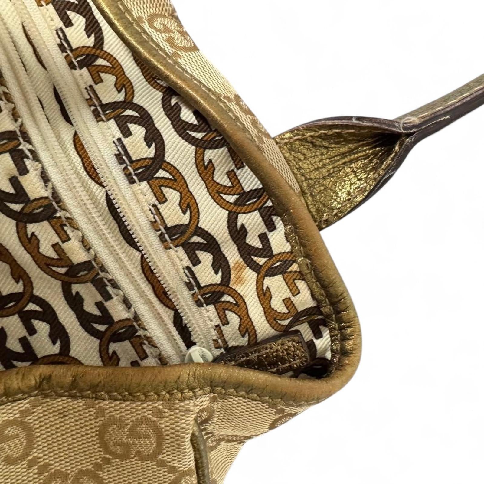 Gucci - Beige Monogram Canvas Handbag with Gold Leather Trim