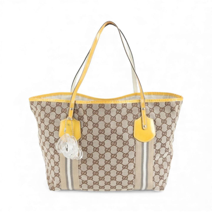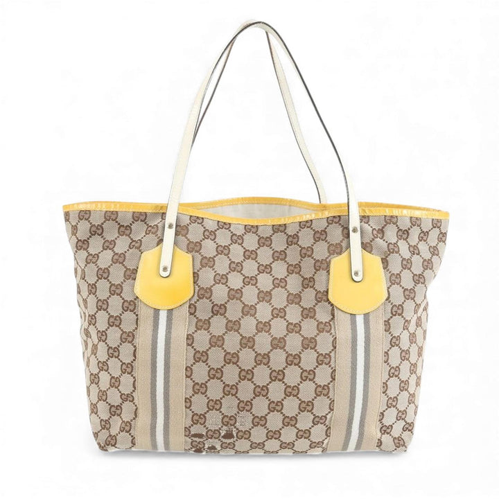 Gucci - Beige Yellow GG Supreme Canvas Tote Bag