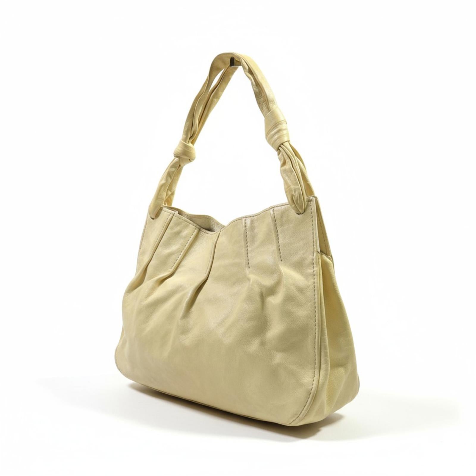 Miu Miu- Beige Leather Handbag with Knotted Handles