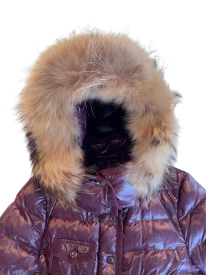 Moncler - Burgundy Puffer Jacket with Fur Hood