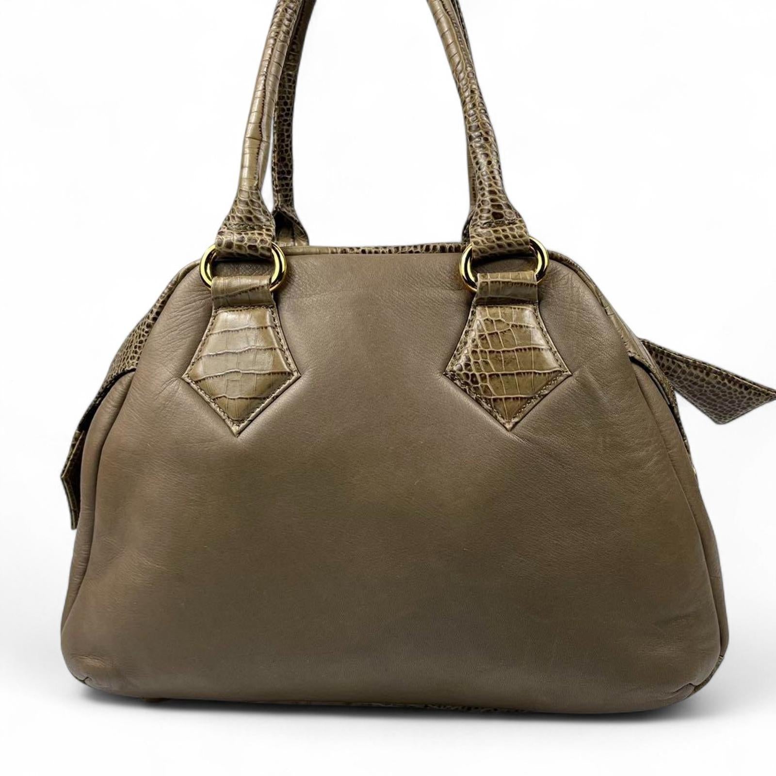Vivienne Westwood - Taupe Leather Handbag with Crocodile Pattern Accen